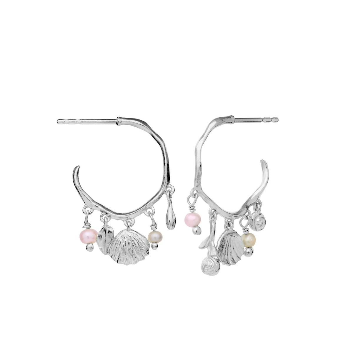 Experience the magic of the Eve Earrings from Maanesten, a breathtaking collection of symbols of love and beauty. Inspired by the power of Aphrodite, these stud earrings are adorned with delicate roses, shells, petals and white and pink pearls, creating a beautiful and harmonious whole. Every detail of the design carries a touch of magic and feminine energy.
