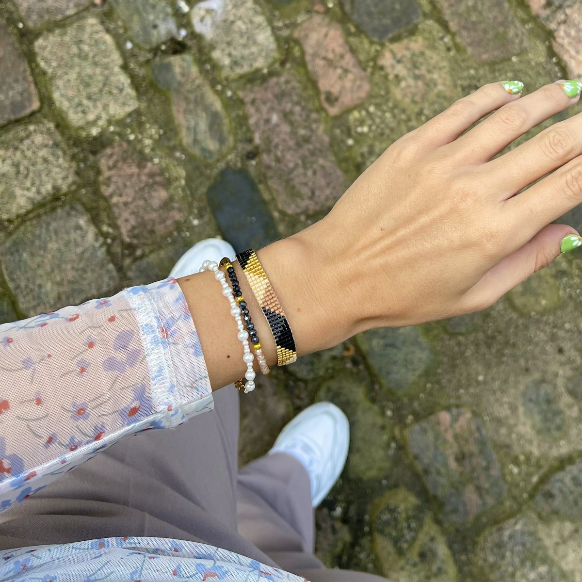 Skønt armbånd med mange detaljer og smukke farver.