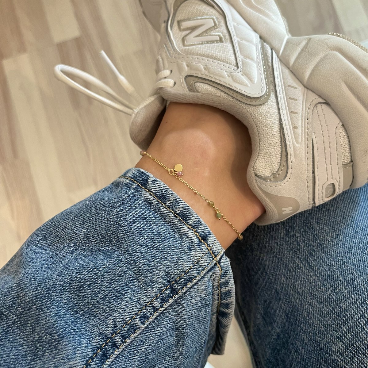 When you lay your eyes on this anklet, you will immediately be captivated by its finesse and elegance. Each tiny coin and stone in the pastel shades adds a touch of sublime beauty to this piece. It's not just an anklet; it's a work of art created to accentuate your personal style and add a touch of glamor to your summer days.
