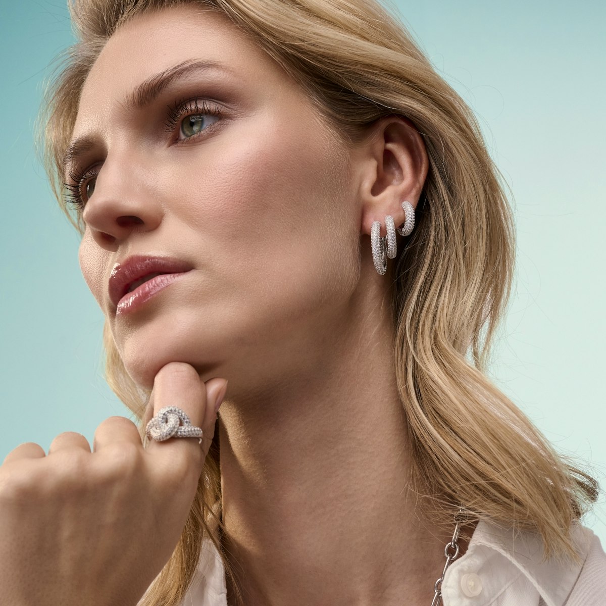 Den anden version er fremstillet af 925 rhodineret sterlingsølv, som giver et elegant og moderne sølvlook. Øreringene er også udstyret med håndsatte facetslebne hvide zirkoner, der fanger lyset og skaber en smuk glans. Med deres polerede overflade og tidløse design er disse øreringe perfekte til både dag-til-dag brug og specielle lejligheder. Vælg den version, der passer bedst til din stil, og lad dine øreringe tale for sig selv.