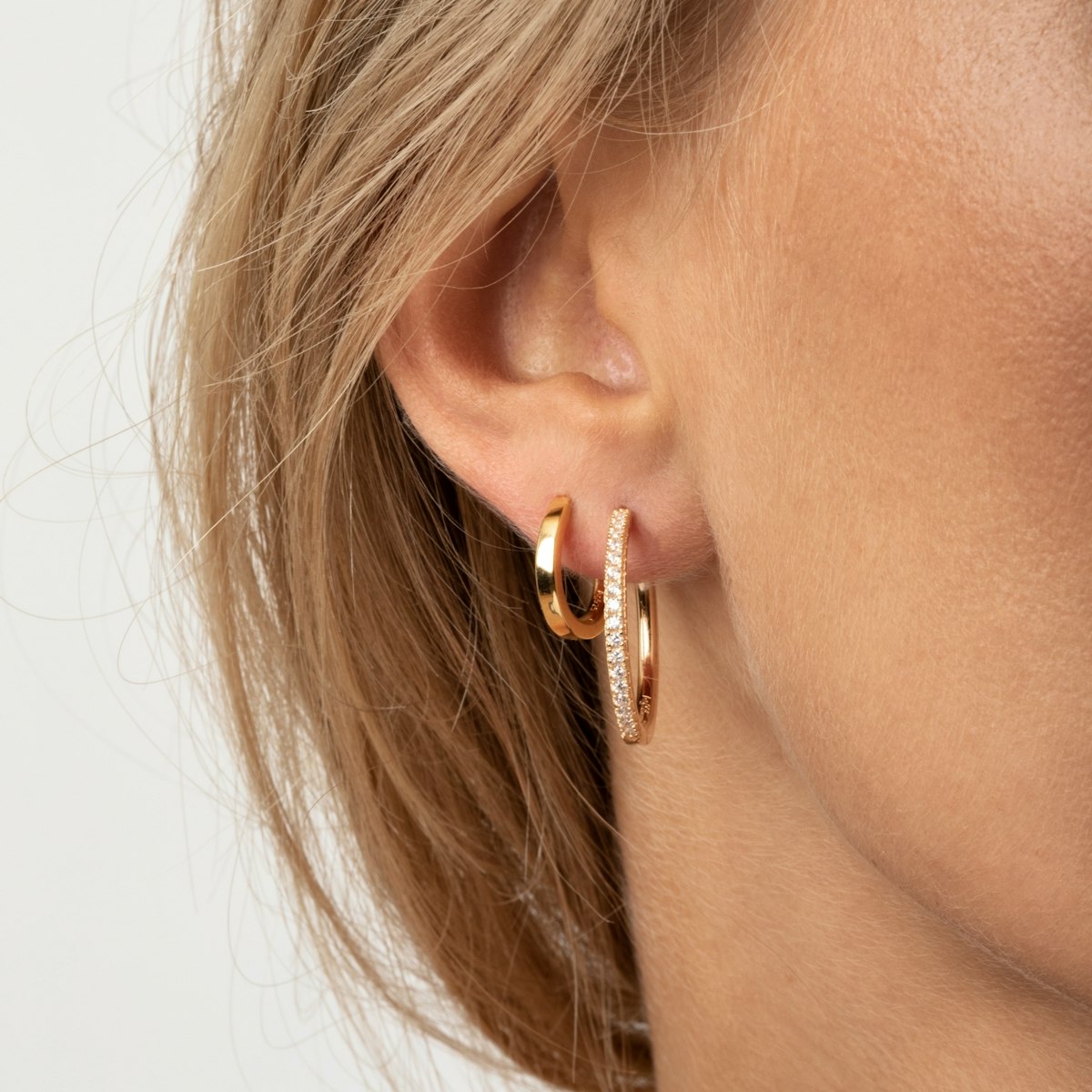 Opdag den tidløse skønhed af disse øreringe fra Sif Jakobs, designet med en blankpoleret overflade og håndsatte facetslebne zirkoner. Øreringene fås i to varianter – 925 sterlingsølv forgyldt med 18 karat guld og rhodineret sterlingsølv – begge designet til at tilføje et strejf af luksus til din stil. De fine facetslebne hvide zirkoner fanger lyset på smukkeste vis og skaber en subtil, men iøjnefaldende elegance.