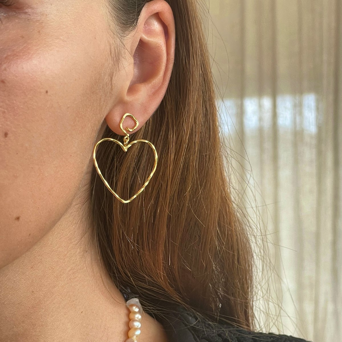 Skøn ørering med snoet designdetaljer og formet som et hjerte