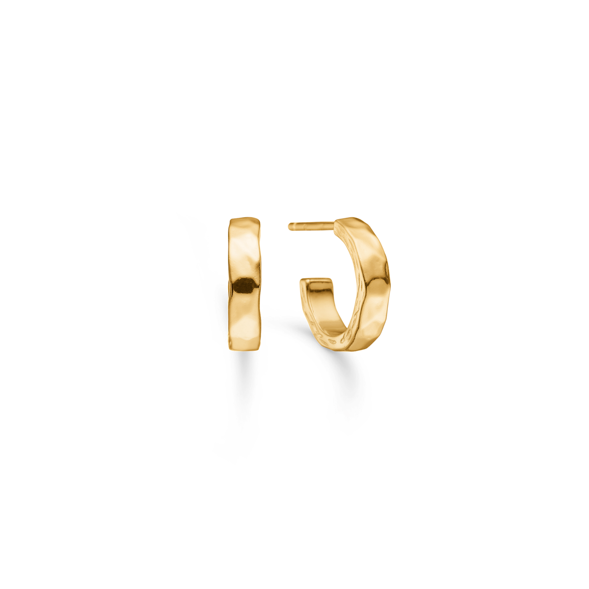 Disse ørestikker er udført i 925 sterlingsølv og belagt med slidstærk 18 karat forgyldning – og fås udelukkende i forgyldt variant. Den blanke overflade fanger lyset smukt og fremhæver de bløde kurver, som skaber et spændende spil mellem struktur og enkelthed.